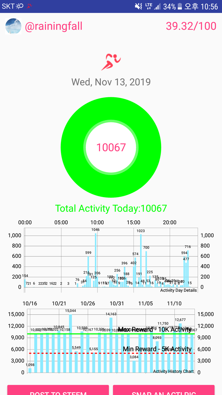 Actifit rewards and upvotes are based on your: