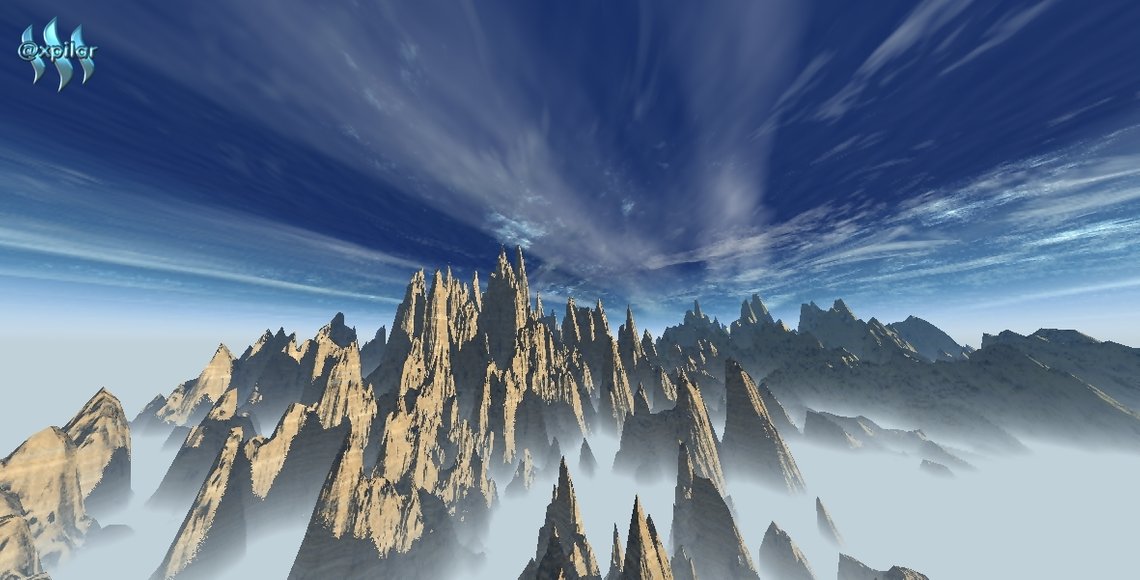 Sharp rocks covered by clouds.