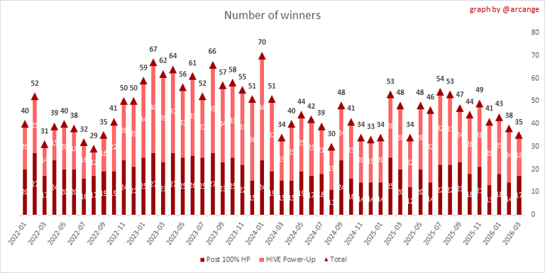 For the March edition, with have 35 winners. Congratulations to all of them.