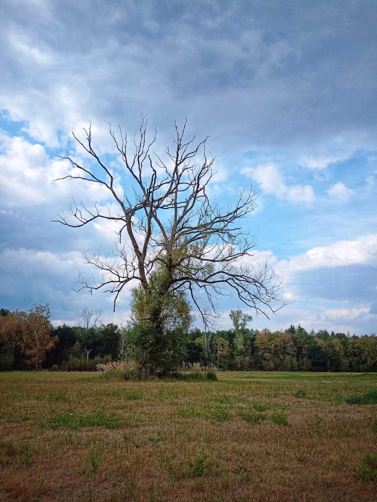 A lone tree with a dying crown.