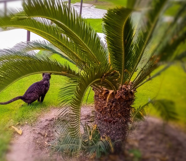 I walked inside the garden to take other shots. I have a thirst to find good scene and I captured it through my Android. Sometimes, my all shots not have required composition and Quality, hence I don't like to share here. This time, I was lucky to find one stray cat near to the palm tree. I took its click with complete silence because I was afraid she will run away if I made a little noise there from my footsteps.