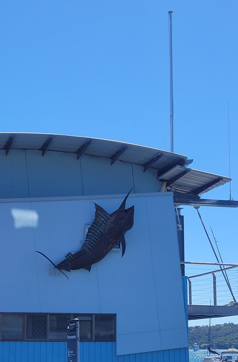 Fish statue at the fishing club which shares the ferry wharf