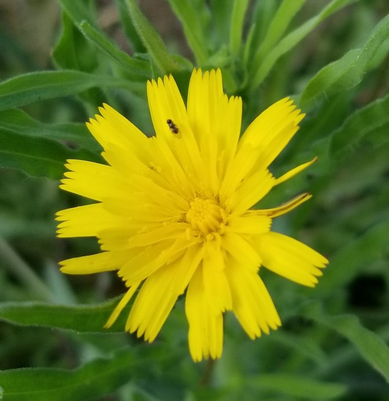 Seen a lot of these yellow daisy type flowers. This one had a bug attending