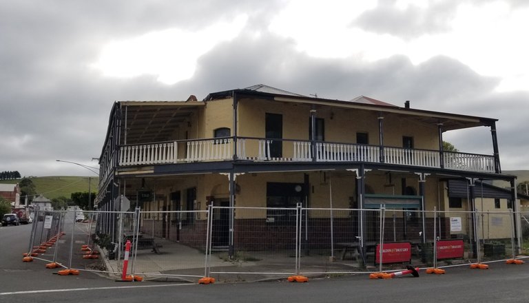 Coffee stop in Toora - a few old buildings standing - this one been painted