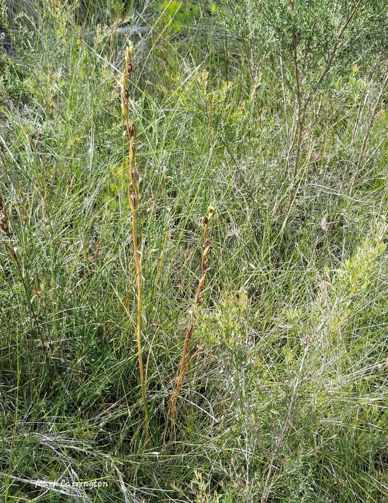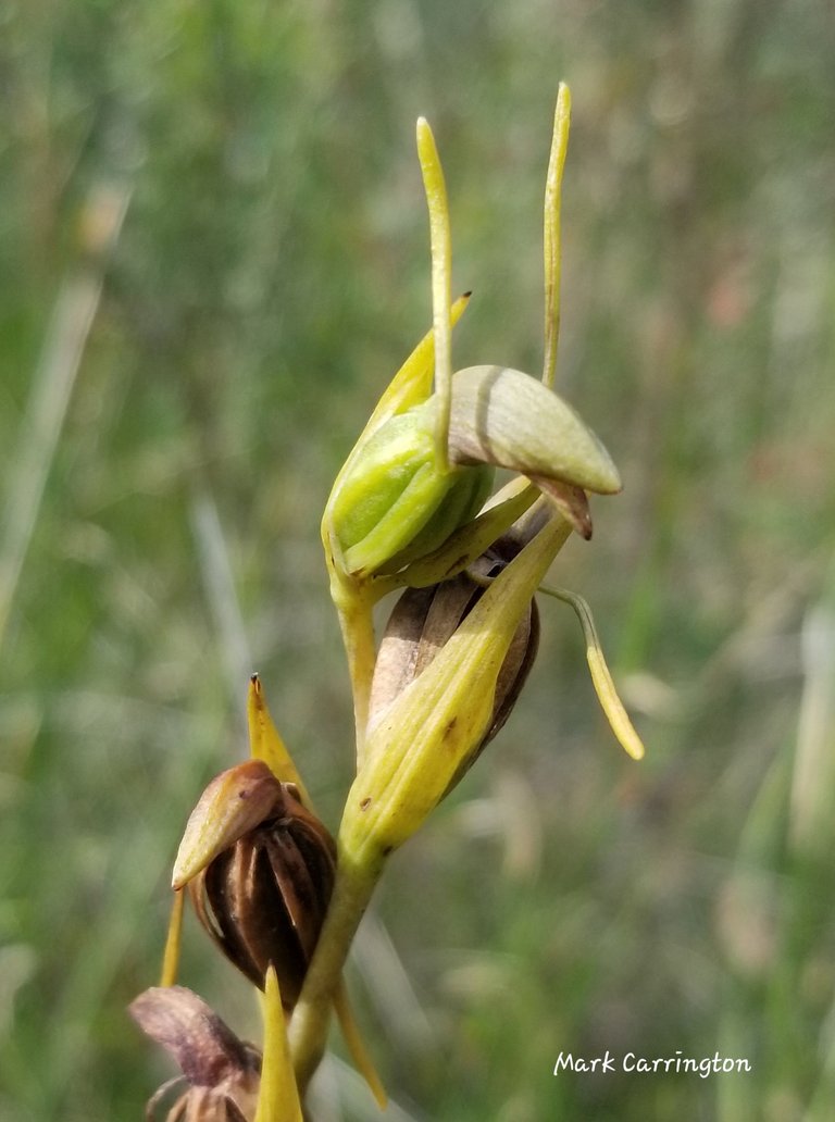 Top flower still holding its shape after pollination - orthoceras strictum