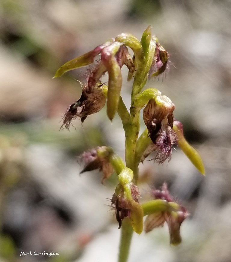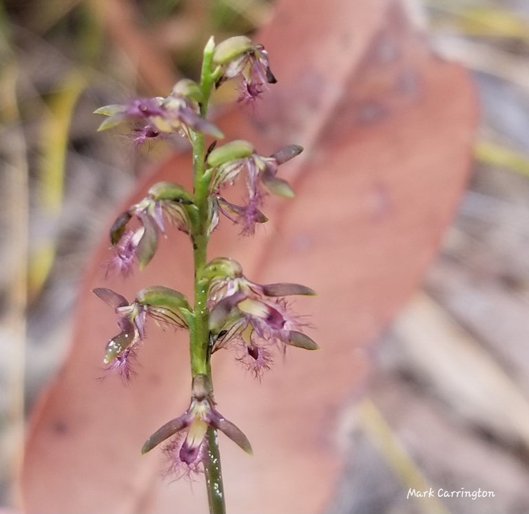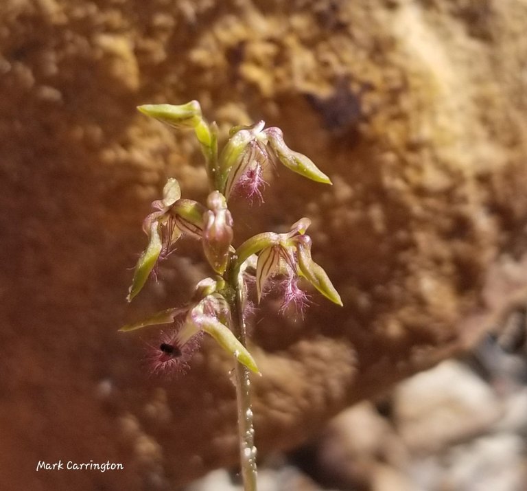 One more shot for the different background - a flat rock rather than a leaf - corunastylis fimbriatus