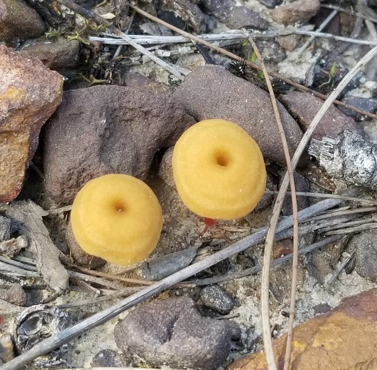 Tiny mushroom action in the road way edges