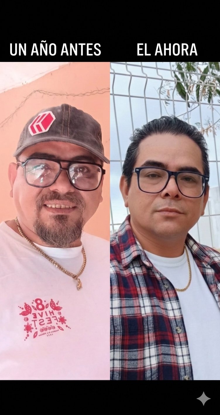 Saludos les comparto está foto donde se me ve un año antes y el ahora.