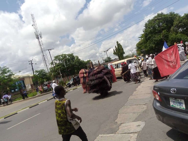 There where lots of masquerade wearing masks walking, dancing and could chase people for sometime.
