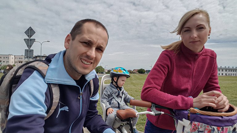 Kolejny trip rowerowy. Troszke nerwowo býło przy pompowaniu rowera, ale ostatecznie rozładowaliśmy emocje na świeżym powietrzu. Nasz synek uwielbia przebywać na dworze. Dzielnie siedział w siodełku. Szkoda że Gracjanek nie dosięga nogami w swoim rowerku. Taki nieudany prezent na roczek dostał.