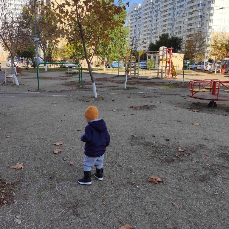 Today I walked with my little son on the playground.