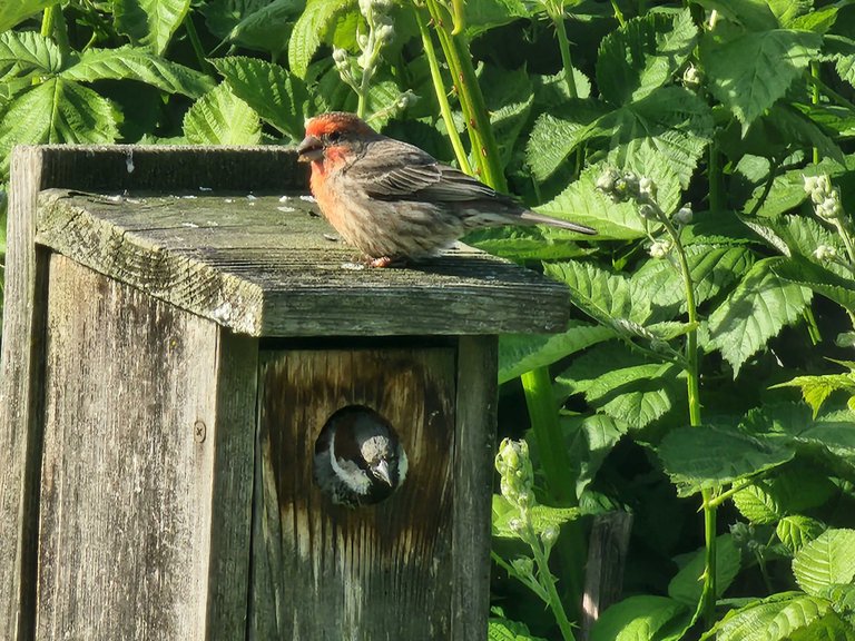 Good afternoon and best wishes for today. Nice shot of the finches.Is there a nest in the bottom hole where he is standing?