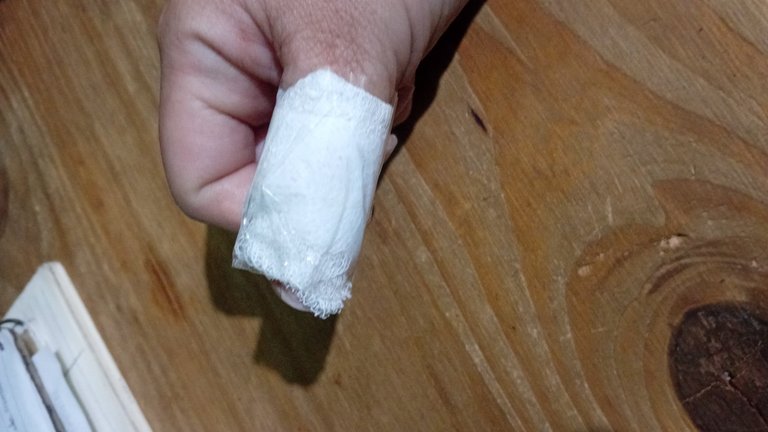 Hay cosas que simplemente pasan, y nadie está exento de ello. Esta vez me tocó a mi, y por un descuido me hice un corte un dedo de mi mano derecha (yo soy diestra) Fue mucho más sencillo de lo que se ve, y actuando a tiempo logré parar el sangrado y seguir trabajando.