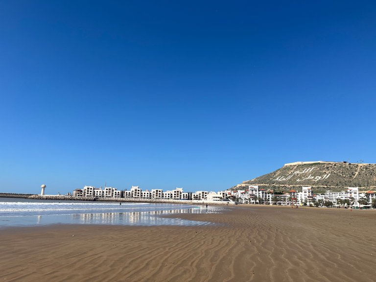 beautiful walk on the main beach of Agadir, temperatures around 15/20 degrees with a warm sun that you could swim in the sea much better than the European winter, air that smells of salt and warmth and Moroccan kindness that awaits you at every corner.