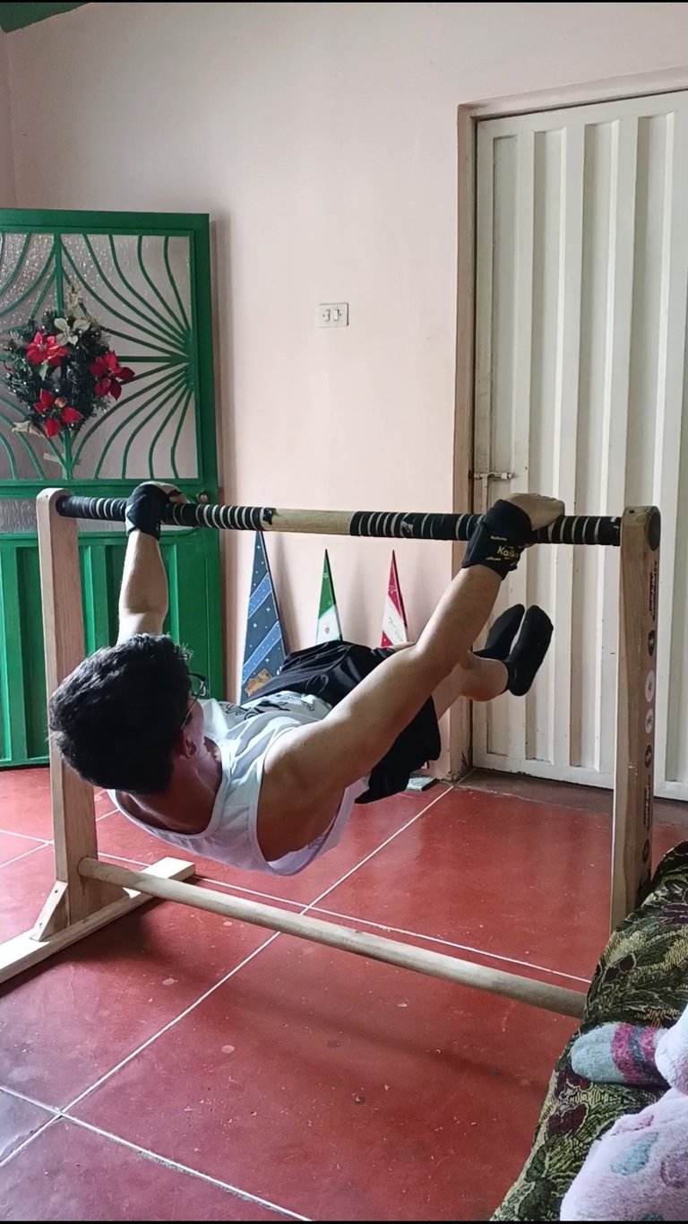 Como pueden observar en mis fotografías, estuve en horas de la mañana en mi casa, cumpliendo y ejecutando ejercicios para el fortalecimiento avanzado del Front Lever, realizando un entrenamiento de calistenia que me ayuda a mi mejora física, con movimientos del elemento estático "Front Lever", haciendo Pull Ups, Pull Ups Archer y aguantes isométricos con diferentes ampliaciones.