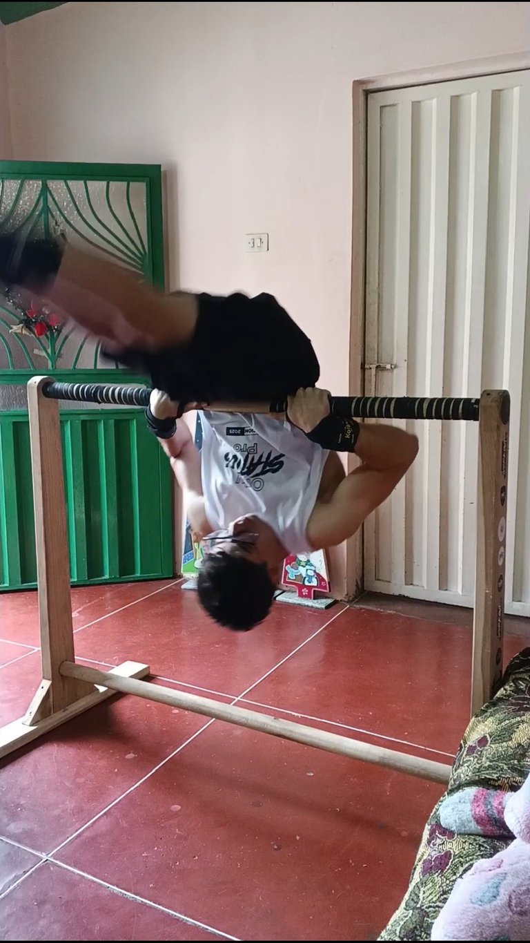 As you can see in my photos, I was at home this morning, performing advanced Front Lever strengthening exercises. I did a calisthenics workout that helps me improve my physical fitness, with movements of the static "Front Lever," including pull-ups, archer pull-ups, and isometric holds with different extensions.